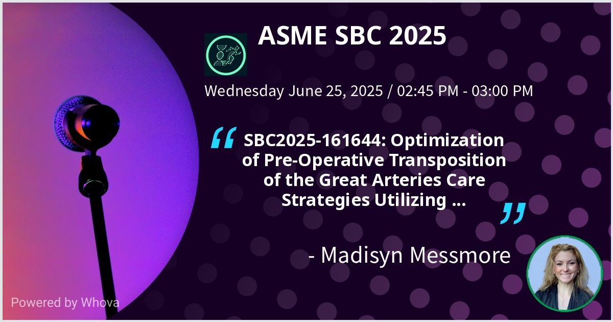 This summer, Madisyn presented her work on TGA at ASME SBC 2026 in New Mexico. Her podium presentation was titled “Optimization of Pre-Operative Transposition of the Great Arteries Care Strategies Utilizing Mathematical Modeling”.